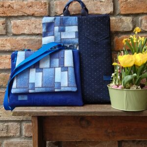 Kék virágos oldal táska